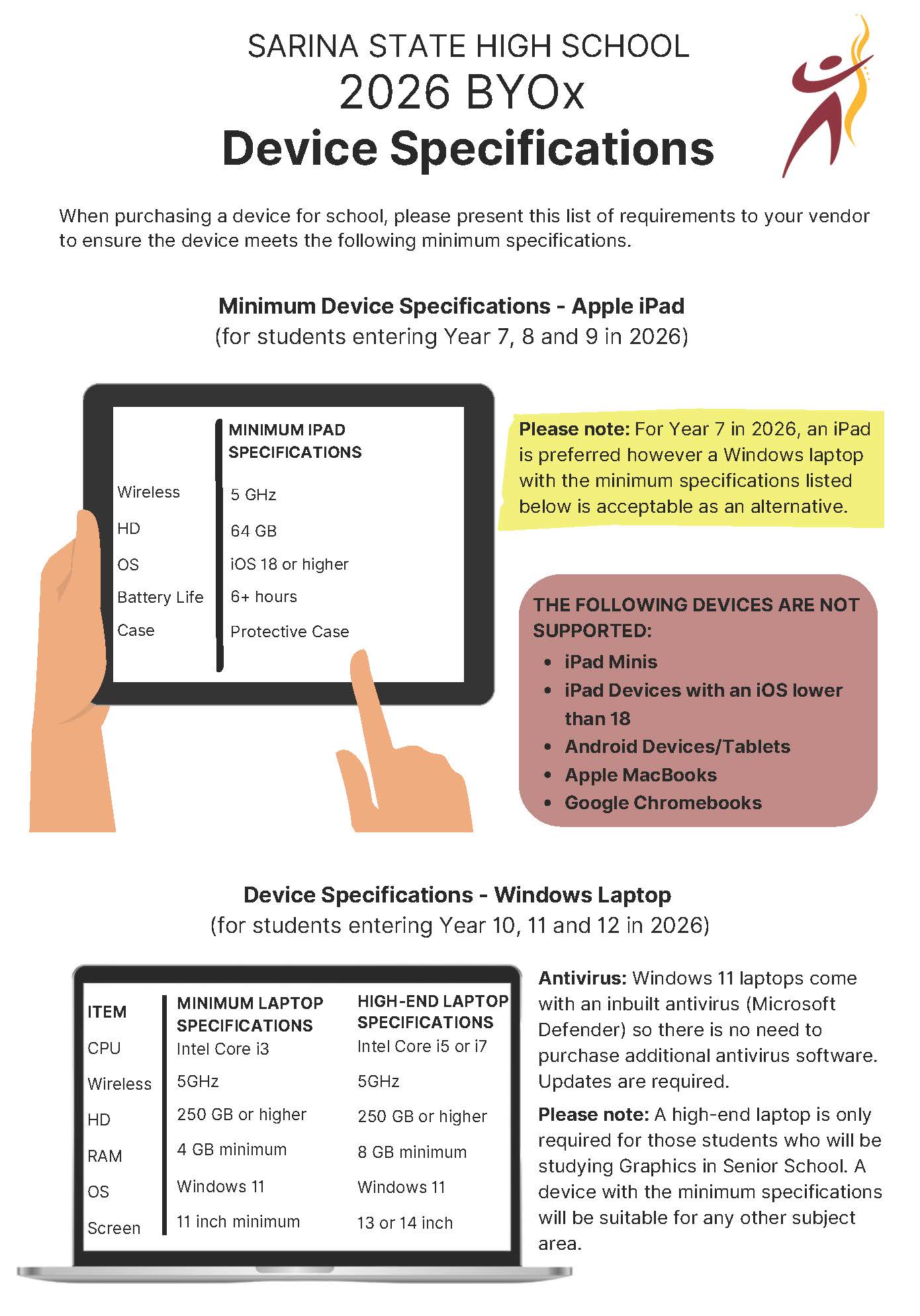 Please note: For Year 7 in 2026, an iPad is preferred however a Windows laptop with the minimum specifications listed below is acceptable as an alternative.